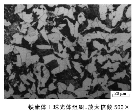 4、熱軋鋼筋基圓的微觀組織特征:在金相顯微鏡下,放大倍數(shù)為500倍,應(yīng)為鐵素體+珠光體組織形貌如下圖。