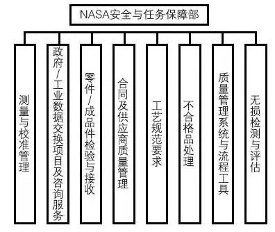 美國航空航天總署總部安全與任務保障部,將無損檢測與評估列入其八大職能之一, 如圖1 所示,其從頂層規(guī)劃的角度,引領(lǐng)著NASA、波音、GE、洛克希德。 馬丁等航空航天機構(gòu)和企業(yè)無損檢測領(lǐng)域的發(fā)展。
