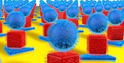 為了研制這種新的材料和結構,研究人員將光刻技術和DNA驅動技術結合在了一起,首先,他們利用光刻技術在聚合物抗蝕劑上鉆出一納米寬的小孔,作為納米顆粒落入的著落墊(其中這些顆粒是經(jīng)過DNA鏈的作用),當?shù)诙€或第三個顆粒落在頂部時,它們會結合在一起,并保持垂直堆疊的狀態(tài)。隨后,研究團隊用黃金納米粒子對上述結構進行涂層,從而形成超晶格結構。