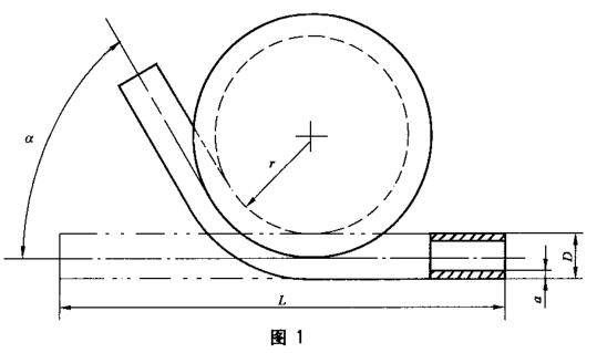 將一根全截面的金屬直管繞著一個規(guī)定半徑和帶槽的彎心彎曲,直至彎曲角度達(dá)到相關(guān)產(chǎn)品標(biāo)準(zhǔn)所規(guī)定的值(見圖1)