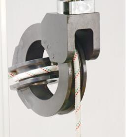 對(duì)直徑(或特征尺寸)為10mm-14mm鋼線材,應(yīng)根據(jù)不同的試樣材質(zhì)硬度選用合適硬度的夾塊進(jìn)行試驗(yàn),一般準(zhǔn)薦夾塊的硬度高于試樣硬度20HRC左右。